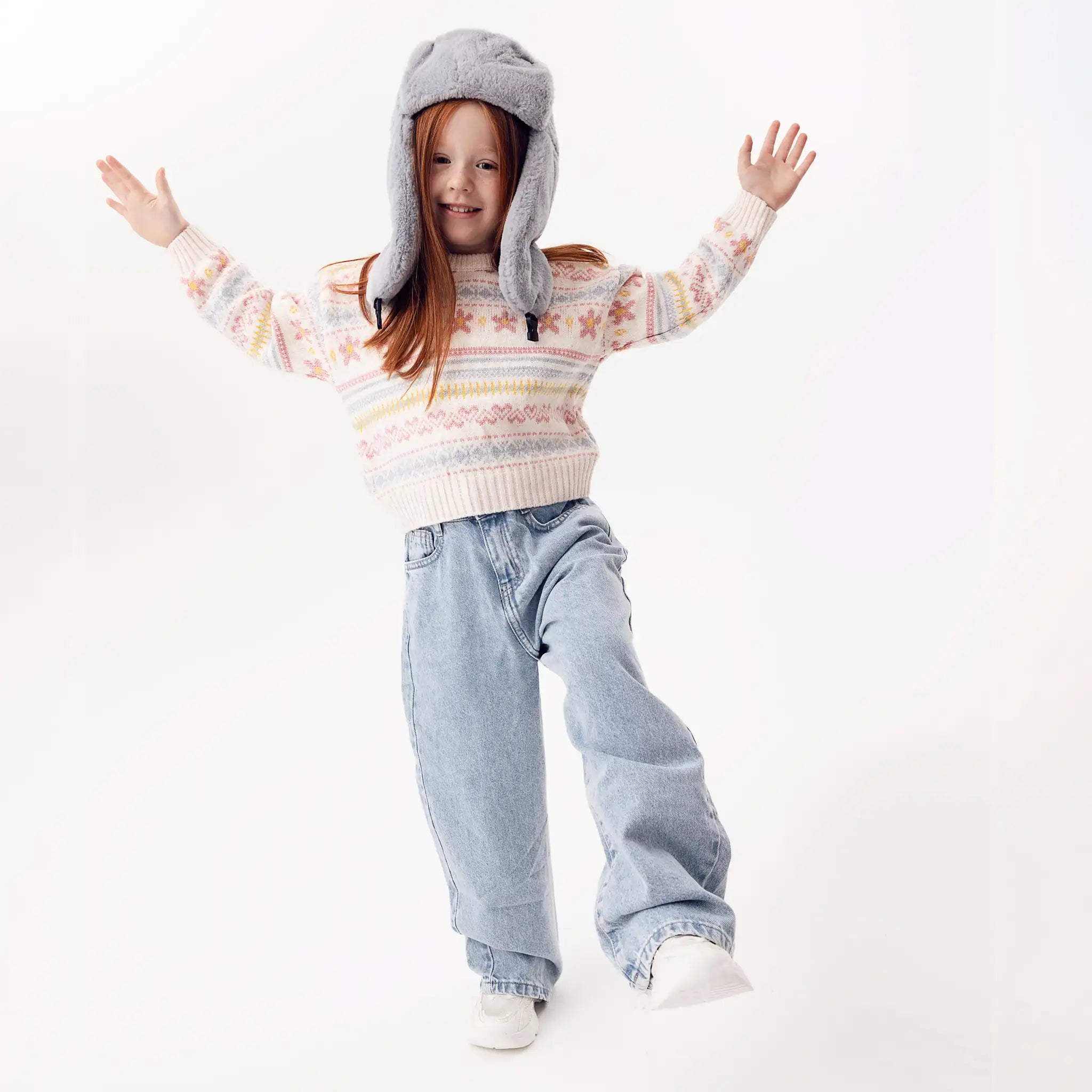Brighten up chilly days with this cheerful knit. Featuring playful hearts, flowers, and colorful patterns, this sweater is made from soft, breathable yarn that keeps kids warm without the bulk.